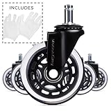 - ONE STEP INSTALLATION: Our package includes 5 premium grade wheels and a simple replacement process. Replacement is as easy as taking off your old office chair casters and pushing these new ones in!
